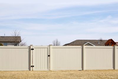 Ideal for backyards and patios, these tall, solid-panel fences create a private, quiet outdoor retreat.